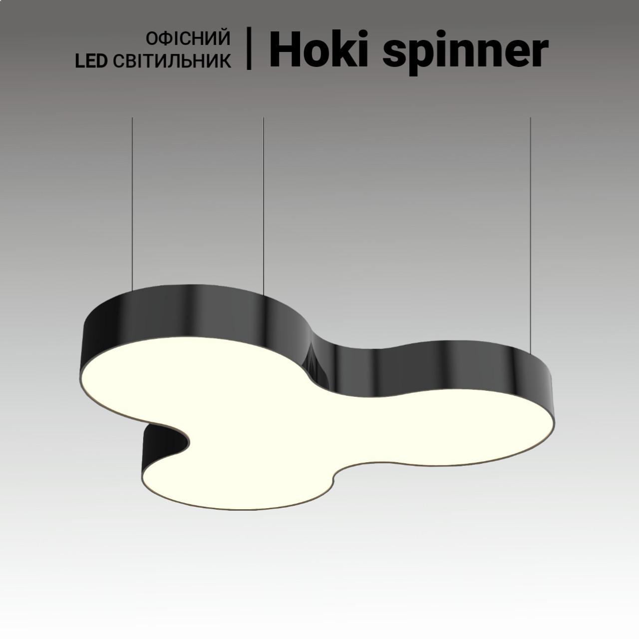 Фігурний підвісний світильник світлодіодний для магазину, сучасного офісу. Модель Hoki spinner являє собою оптимальне поєднання потужності і довговічності. Хочете купити круглий офісний світильник LED білого або чорного кольору? А як на рахунок червоного або зеленого? Можемо виготовити світильник під ваш інтер'єр у будь-якому кольорі по RAL. Це ж стосується і розмірів LED люстр для офісу. Можливо виготовлення за індивідуальними розмірами замовника, ціна за запитом.